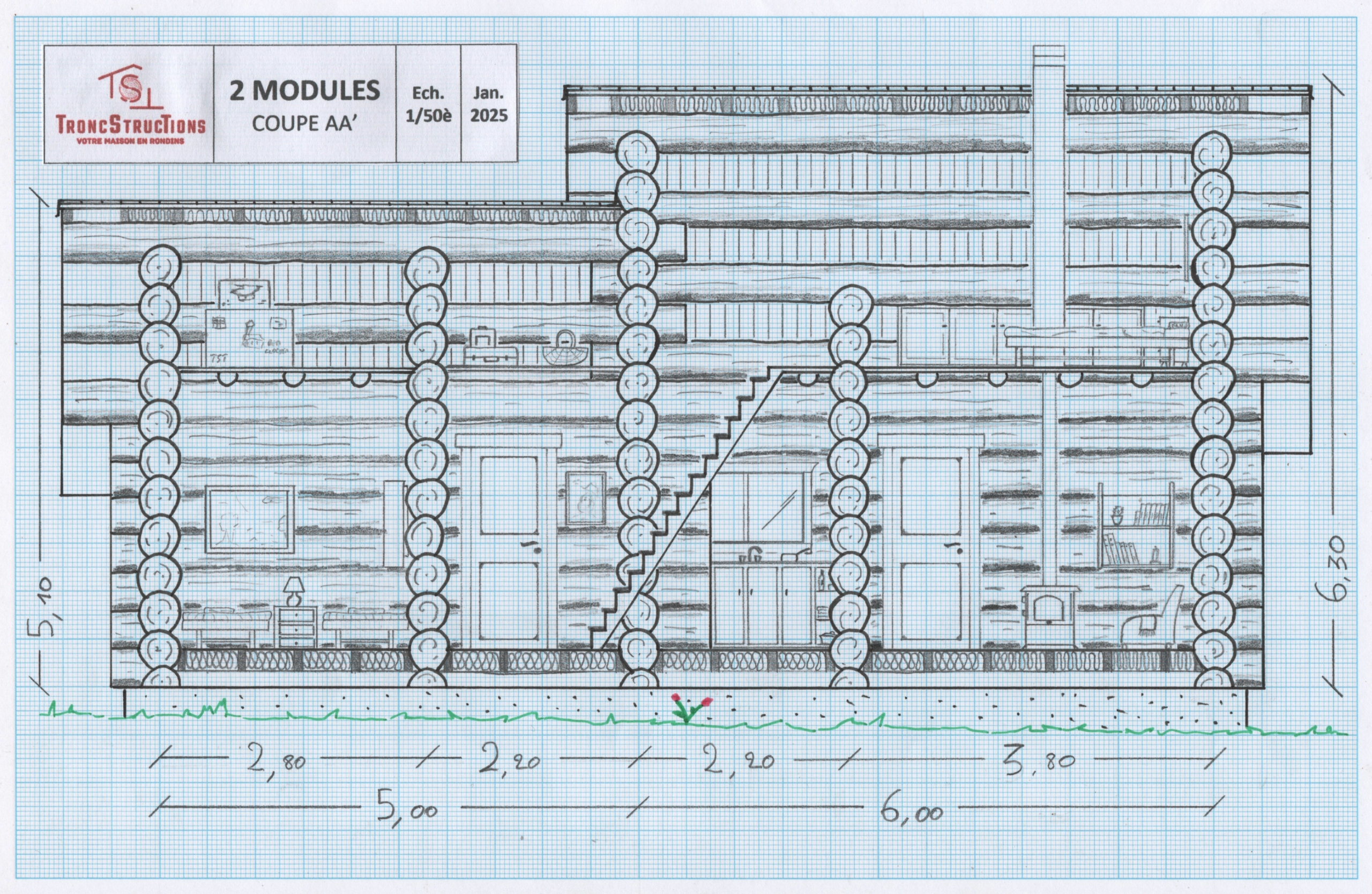 Et le résultat final montre une maison aux façades, aux proportions, aux volumes intérieurs bien spécifiques et son mode de construction qui ne ressemble à aucun autre lui confère également un charme unique et rare.
